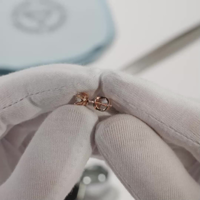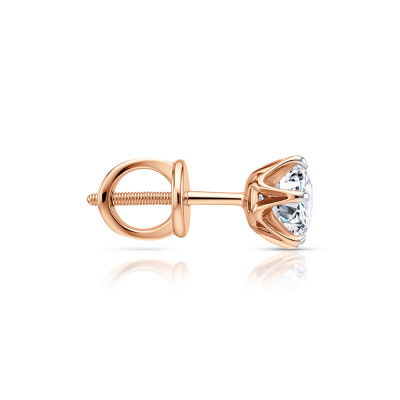 Серьги с 2 бриллиантами выращенными, 1.97 карат, огранка круг 57 граней, цвет 4, чистота 5, тип огранки А; Розовое золото 585 пробы.