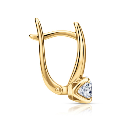 Серьги с 2 бриллиантами выращенными, 1.1 карат, огранка круг 57 граней, цвет 4, чистота 5, тип огранки А; Желтое золото 585 пробы.
