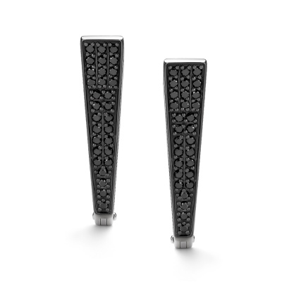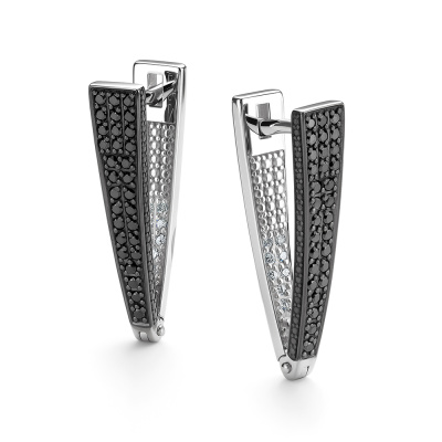 Серьги с 16 бриллиантами природными, 0.11 карат, огранка круг 57 граней, цвет 4, чистота 5, тип огранки А; 60 бриллиантами черными природными облагороженными, 0.45 карат, огранка круг 57 граней, цвет 7, чистота 6, тип огранки А; Белое золото 585 пробы.