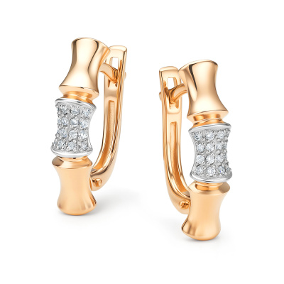 Серьги с 32 бриллиантами природными, 0.12 карат, огранка круг 57 граней, цвет 4, чистота 5, тип огранки А; Розовое золото 585 пробы.