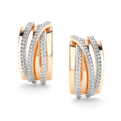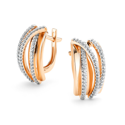 Серьги с 114 бриллиантами природными, 0.35 карат, огранка круг 57 граней, цвет 4, чистота 5, тип огранки А; Розовое золото 585 пробы.