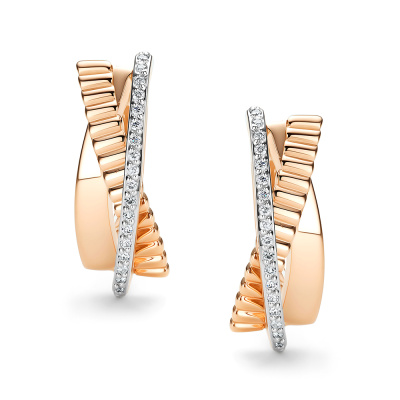 Серьги с 36 бриллиантами природными, 0.1 карат, огранка круг 57 граней, цвет 4, чистота 5, тип огранки А; Розовое золото 585 пробы.