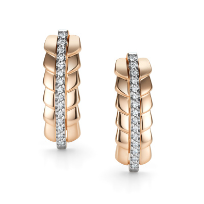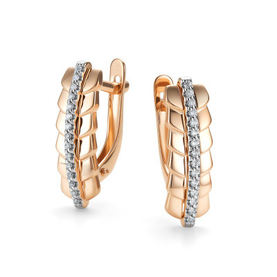 Серьги с 30 бриллиантами природными, 0.08 карат, огранка круг 57 граней, цвет 4, чистота 5, тип огранки А; Розовое золото 585 пробы.