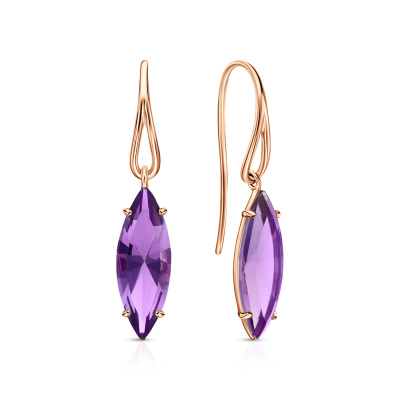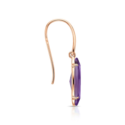 Серьги с 2 аметистами природными, 4.86 карат; Розовое золото 585 пробы.
