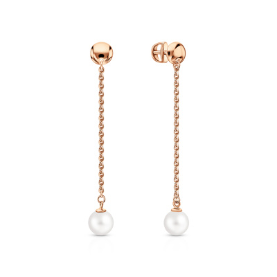 Серьги с 2 жемчугами пресноводными культ.белыми, 2.78 карат; Розовое золото 585 пробы.
