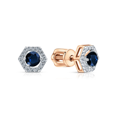 Серьги с 36 бриллиантами природными, 0.1 карат, огранка круг 17 граней, цвет 2, чистота 2, тип огранки А; 2 сапфирами природными, 0.46 карат, цвет 2, чистота 2, тип огранки В; Розовое золото 585 пробы.