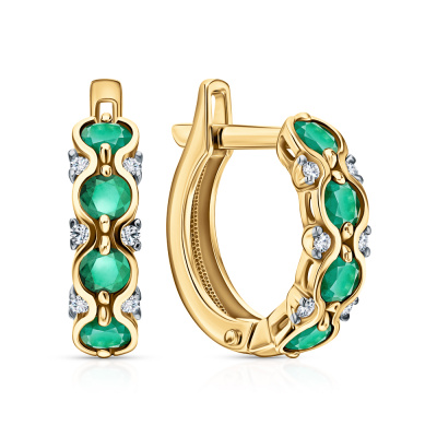 Золотые серьги с бриллиантами природными и изумрудами природными