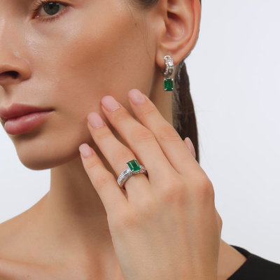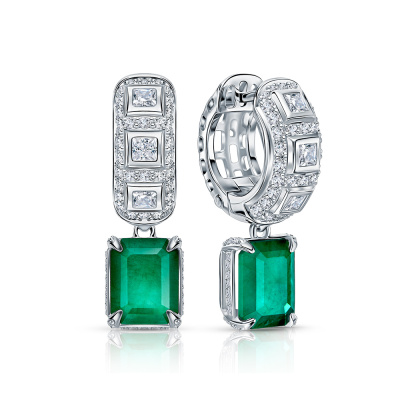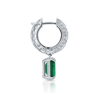 Серьги с 6 бриллиантами природными, 0.55 карат, огранка принцесса 65 граней, цвет 3, чистота 6, тип огранки А; 36 бриллиантами природными, 0.34 карат, огранка круг 57 граней, цвет 3, чистота 6, тип огранки А; 18 бриллиантами природными, 0.14 карат, огранка круг 57 граней, цвет 3, чистота 6, тип огранки А; 32 бриллиантами природными, 0.09 карат, огранка круг 17 граней, цвет 2, чистота 2, тип огранки А; 46 бриллиантами природными, 0.08 карат, огранка круг 17 граней, цвет 2, чистота 2, тип огранки А; 2 изумрудами природными, 4.12 карат, цвет 3, чистота 3, тип огранки Б; Белое золото 585 пробы.