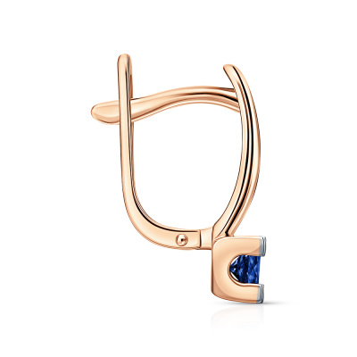 Серьги с 8 бриллиантами природными, 0.01 карат, огранка круг 17 граней, цвет 2, чистота 2, тип огранки А; 2 сапфирами природными, 0.32 карат, цвет 2, чистота 2, тип огранки В; Розовое золото 585 пробы.