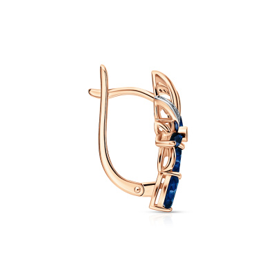 Серьги с 2 бриллиантами природными, 0.01 карат, огранка круг 17 граней, цвет 2, чистота 2, тип огранки А; 32 бриллиантами природными, 0.06 карат, огранка круг 17 граней, цвет 2, чистота 2, тип огранки А; 8 сапфирами природными, 1.42 карат, цвет 2, чистота 2, тип огранки Б; 2 сапфирами природными, 0.21 карат, цвет 2, чистота 2, тип огранки Б; Розовое золото 585 пробы.