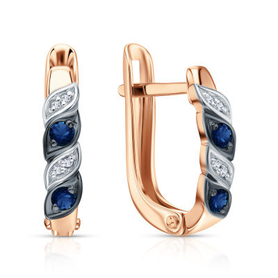 Серьги с 8 бриллиантами природными, 0.01 карат, огранка круг 17 граней, цвет 2, чистота 2, тип огранки А; 4 сапфирами природными, 0.1 карат, цвет 2, чистота 2, тип огранки В; Розовое золото 585 пробы.