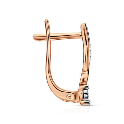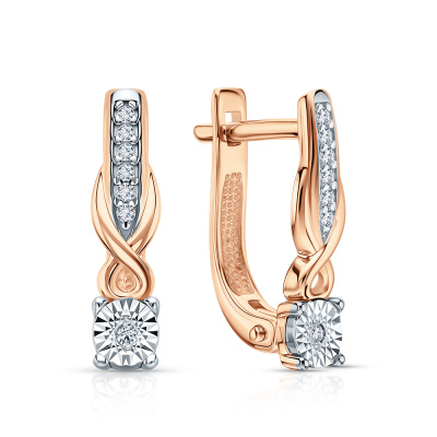 Серьги с 2 бриллиантами природными, 0.008 карат, огранка круг 17 граней, цвет 2, чистота 2, тип огранки А; 12 бриллиантами природными, 0.03 карат, огранка круг 17 граней, цвет 2, чистота 2, тип огранки А; Розовое и белое золото 585 пробы.