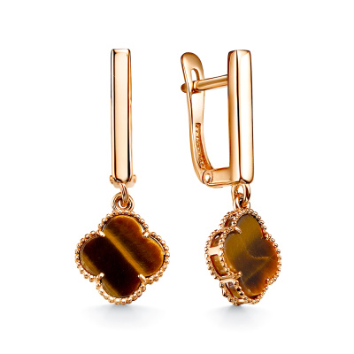 Серьги с 2 тигровыми глазами, 1.96 карат; Розовое золото 585 пробы.