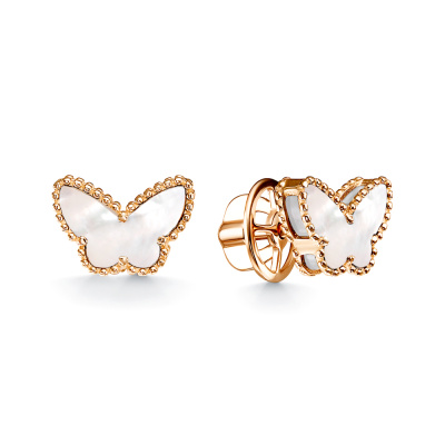 Серьги с 2 перламутрами белыми природными, 1.73 карат; Розовое золото 585 пробы.