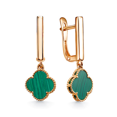 Серьги с 2 малахитами синтетическими, 1.61 карат; Розовое золото 585 пробы.