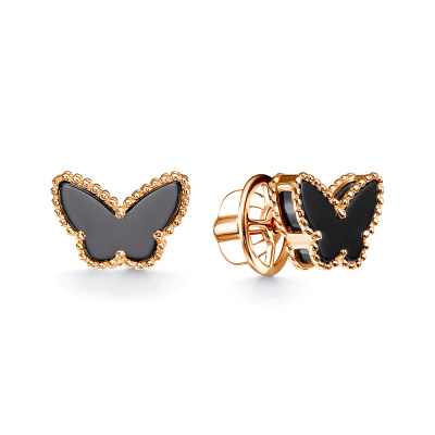 Золотые серьги с ониксом природным