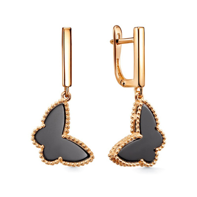 Серьги с 2 ониксами черными природными, 3.69 карат; Розовое золото 585 пробы.