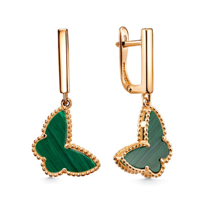 Серьги с 2 малахитами синтетическими, 2.91 карат; Розовое золото 585 пробы.