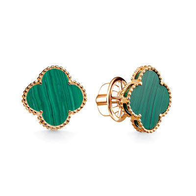 Золотые серьги с малахитами синтетическими