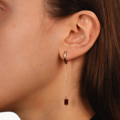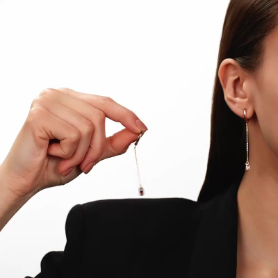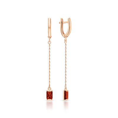Серьги с 2 гранатами природными, 1.41 карат; Розовое золото 375 пробы.