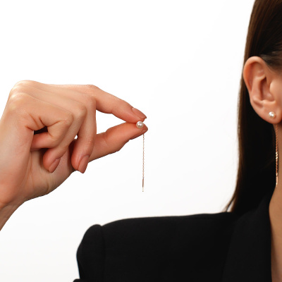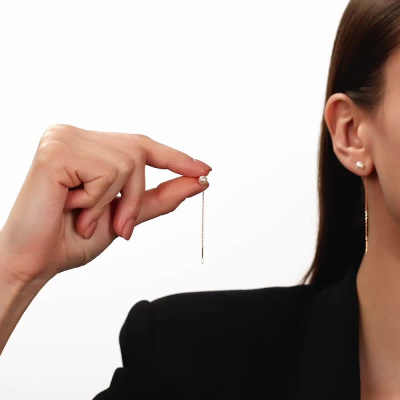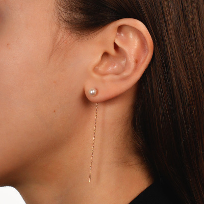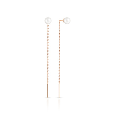 Серьги с 2 жемчугами пресноводными культ.белыми, 1.95 карат; Розовое золото 375 пробы.
