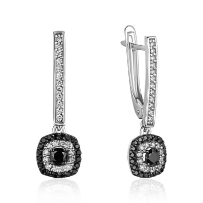 Серьги с 48 бриллиантами природными, 0.34 карат, огранка круг 57 граней, цвет 4, чистота 5, тип огранки А; 2 бриллиантами природными облагороженными, 0.26 карат, огранка круг 57 граней, цвет 7, чистота 6, тип огранки А; 40 бриллиантами природными облагороженными, 0.19 карат, огранка круг 57 граней, цвет 7, чистота 6, тип огранки А; Белое золото 585 пробы.