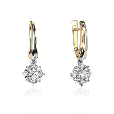 Серьги с 2 бриллиантами природными, 0.53 карат, огранка круг 57 граней, цвет 3, чистота 7, тип огранки А; 8 бриллиантами природными, 0.51 карат, огранка круг 57 граней, цвет 4, чистота 6, тип огранки А; 8 бриллиантами природными, 0.35 карат, огранка круг 57 граней, цвет 4, чистота 5, тип огранки А; Желтое и белое золото 585 пробы.