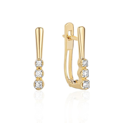 Серьги с 2 бриллиантами природными, 0.07 карат, огранка круг 57 граней, цвет 4, чистота 6, тип огранки А; 2 бриллиантами природными, 0.05 карат, огранка круг 57 граней, цвет 6, чистота 7, тип огранки А; 2 бриллиантами природными, 0.02 карат, огранка круг 57 граней, цвет 4, чистота 5, тип огранки А; Желтое золото 585 пробы.