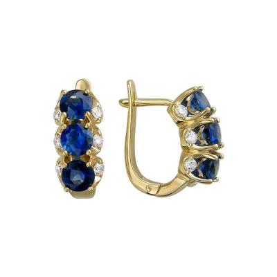 Золотые серьги с бриллиантами природными и сапфирами природными