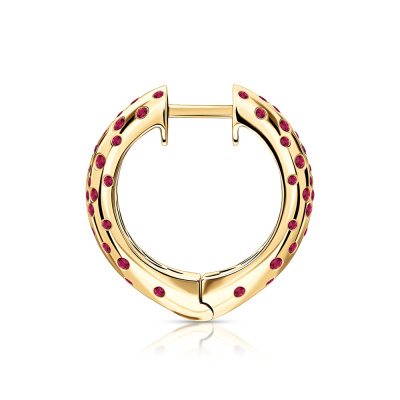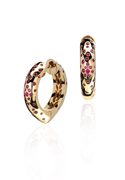 Серьги с 26 рубинами природными, 0.39 карат, цвет 2, чистота 2; 58 рубинами природными, 0.58 карат, цвет 2, чистота 2; 12 рубинами природными, 0.09 карат, цвет 2, чистота 2; 44 рубинами природными, 0.25 карат, цвет 2, чистота 2; Желтое золото 585 пробы.