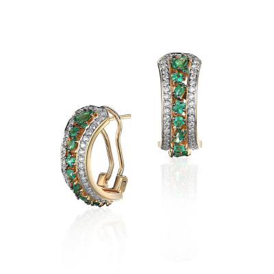 Золотые серьги с бриллиантами природными и изумрудами природными