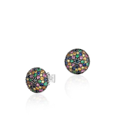 Серьги с 2 сапфирами микс, 0.09 карат; 10 сапфирами природными, 0.15 карат, цвет 2, чистота 2; 32 сапфирами микс, 0.46 карат; 6 изумрудами природными, 0.06 карат, цвет 3, чистота 2; 10 сапфирами природными, 0.1 карат, цвет 2, чистота 2; 6 изумрудами природными, 0.04 карат, цвет 3, чистота 3; 16 бриллиантами природными облагороженными, 0.08 карат, огранка круг 57 граней, цвет 5, чистота 4, тип огранки А; Белое золото 585 пробы.