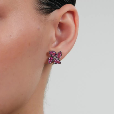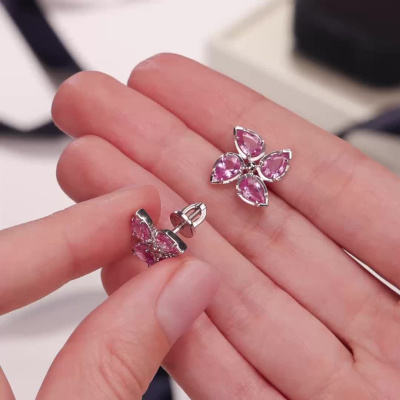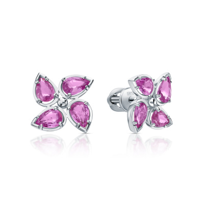Серьги с 8 сапфирами розовыми природными, 3.42 карат, тип огранки Б; Белое золото 585 пробы.