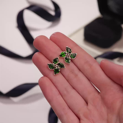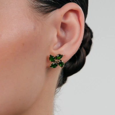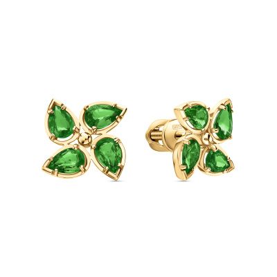 Золотые серьги с хромдиопсидами природными