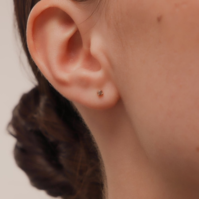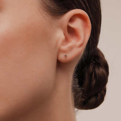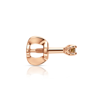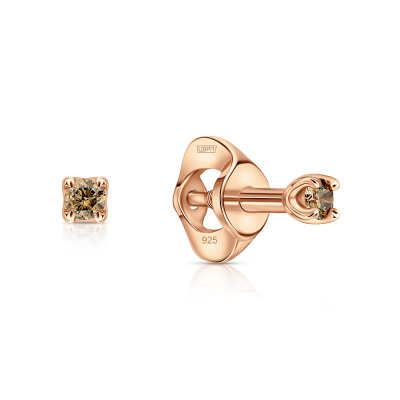 Серьги с 2 бриллиантами коньячными природными, 0.07 карат, огранка круг 57 граней, цвет 7, чистота 6, тип огранки А; Серебро 925 пробы.