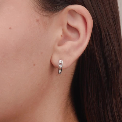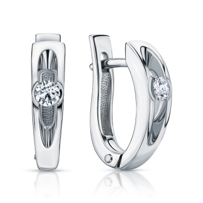 Серьги с 2 бриллиантами природными, 0.15 карат, огранка круг 57 граней, цвет 4, чистота 6, тип огранки А; Белое золото 585 пробы.