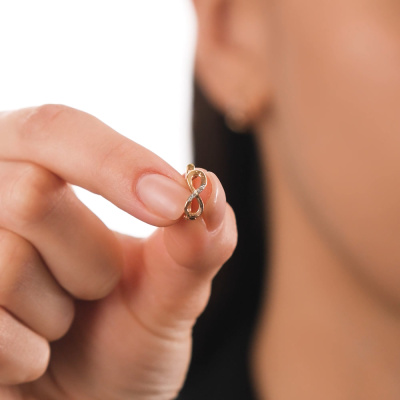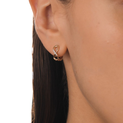 Серьги с 10 бриллиантами природными, 0.01 карат, огранка круг 17 граней, цвет 2, чистота 2, тип огранки А; Розовое золото 585 пробы.
