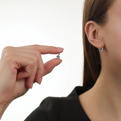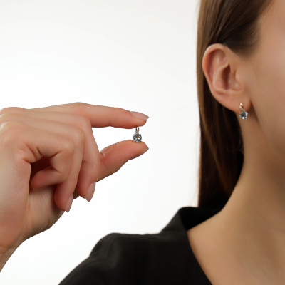 Серьги с 6 бриллиантами природными, 0.01 карат, огранка круг 17 граней, цвет 2, чистота 2, тип огранки А; 2 топазами скай природными, 2.04 карат; Розовое золото 585 пробы.