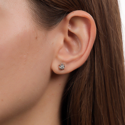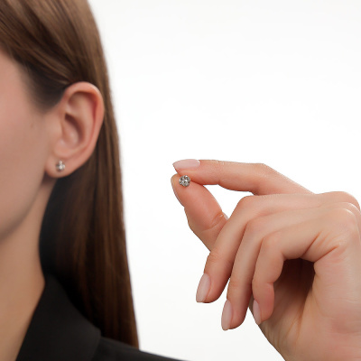 Серьги с 2 бриллиантами природными, 0.22 карат, огранка круг 57 граней, цвет 4, чистота 6, тип огранки А; Белое золото 585 пробы.