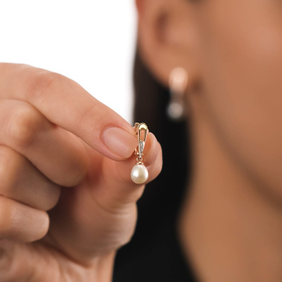 Золотые серьги с бриллиантами природными и жемчугами природными культивированными