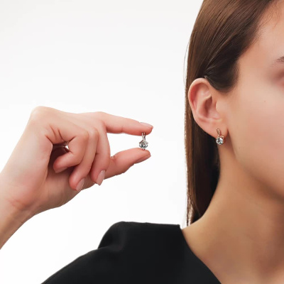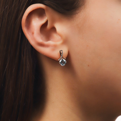 Серьги с 20 бриллиантами природными, 0.03 карат, огранка круг 17 граней, цвет 2, чистота 2, тип огранки А; 2 топазами скай природными, 2.14 карат; Розовое золото 585 пробы.