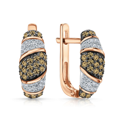 Серьги с 52 бриллиантами природными, 0.11 карат, огранка круг 17 граней, цвет 2, чистота 2, тип огранки А; 44 бриллиантами коньячными природными, 0.4 карат, огранка круг 57 граней, цвет 7, чистота 5, тип огранки А; Розовое золото 585 пробы.