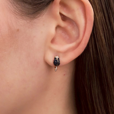 Серьги с 10 бриллиантами природными, 0.01 карат, огранка круг 17 граней, цвет 2, чистота 2, тип огранки А; 18 сапфирами природными, 0.39 карат, цвет 2, чистота 2, тип огранки В; Розовое золото 585 пробы.