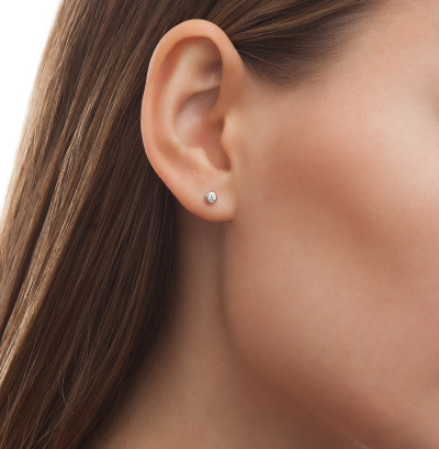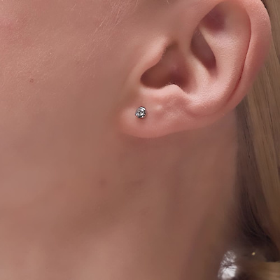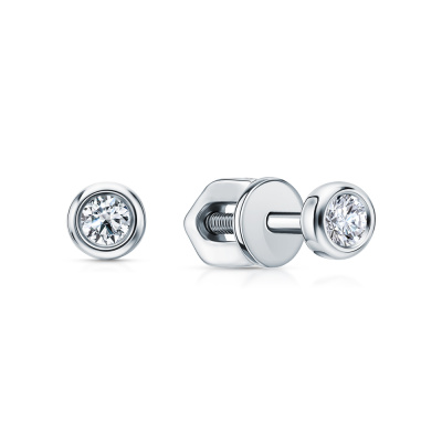 Серьги с 2 бриллиантами природными, 0.11 карат, огранка круг 57 граней, цвет 4, чистота 5, тип огранки А; Белое золото 585 пробы.