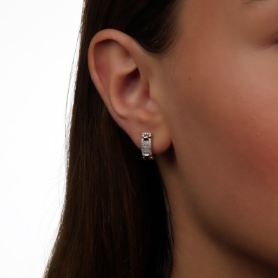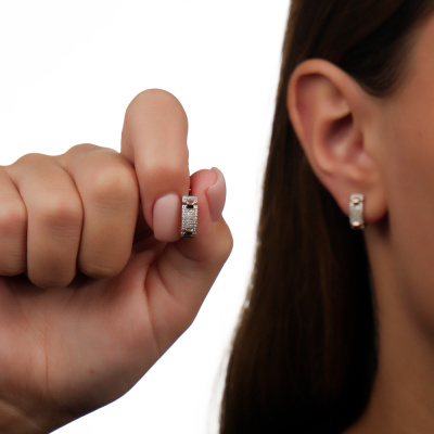Серьги с 72 бриллиантами природными, 0.14 карат, огранка круг 17 граней, цвет 2, чистота 2, тип огранки А; Розовое золото 585 пробы.