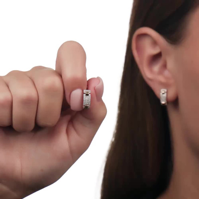 Серьги с 72 бриллиантами природными, 0.14 карат, огранка круг 17 граней, цвет 2, чистота 2, тип огранки Б; Розовое золото 585 пробы.