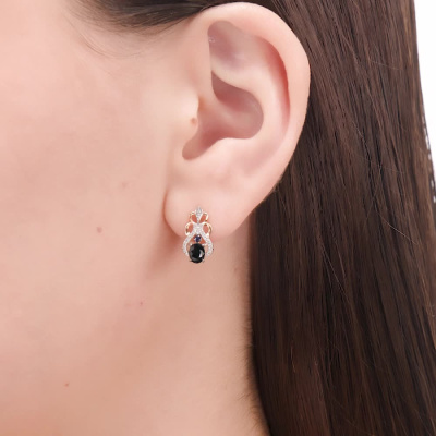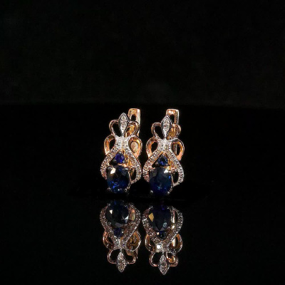 Серьги с 40 бриллиантами природными, 0.08 карат, огранка круг 17 граней, цвет 2, чистота 2, тип огранки А; 2 сапфирами природными, 0.79 карат, цвет 2, чистота 2, тип огранки Б; 2 сапфирами природными, 0.05 карат, цвет 2, чистота 2, тип огранки В; Розовое золото 585 пробы.