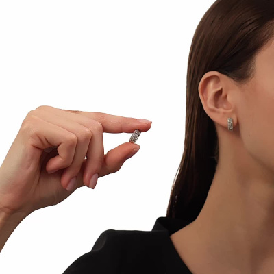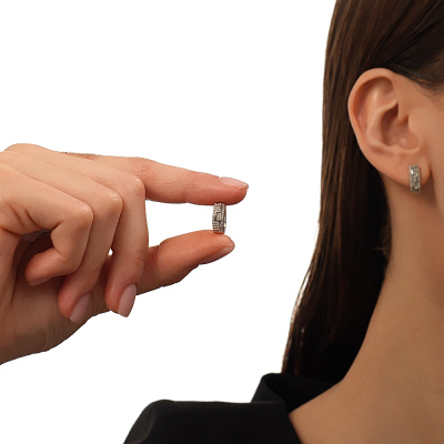 Серьги с 92 бриллиантами природными, 0.16 карат, огранка круг 17 граней, цвет 2, чистота 2, тип огранки А; Белое золото 585 пробы.
