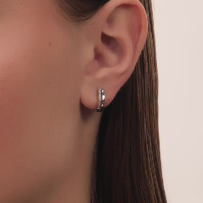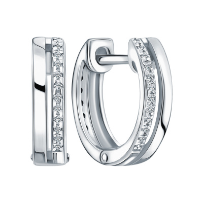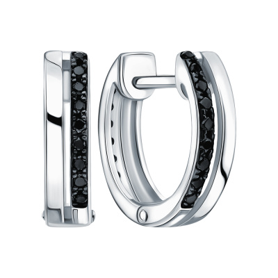 Серьги с 24 бриллиантами природными, 0.05 карат, огранка круг 17 граней, цвет 2, чистота 2, тип огранки А; 18 бриллиантами черными природными облагороженными, 0.06 карат, огранка круг 57 граней, цвет 7, чистота 6, тип огранки А; Белое золото 585 пробы.