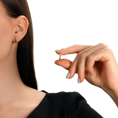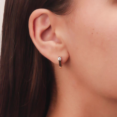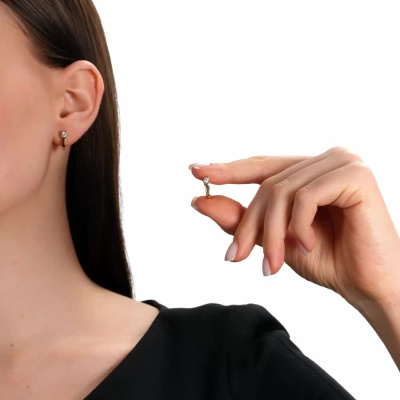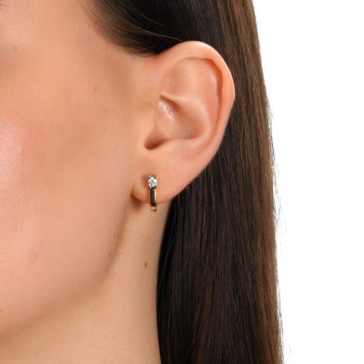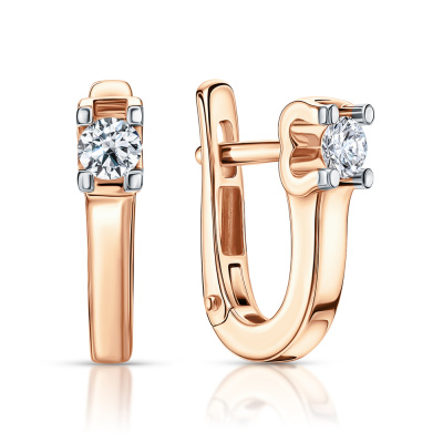 Серьги с 2 бриллиантами природными, 0.2 карат, огранка круг 57 граней, цвет 3, чистота 6, тип огранки А; Розовое золото 585 пробы.